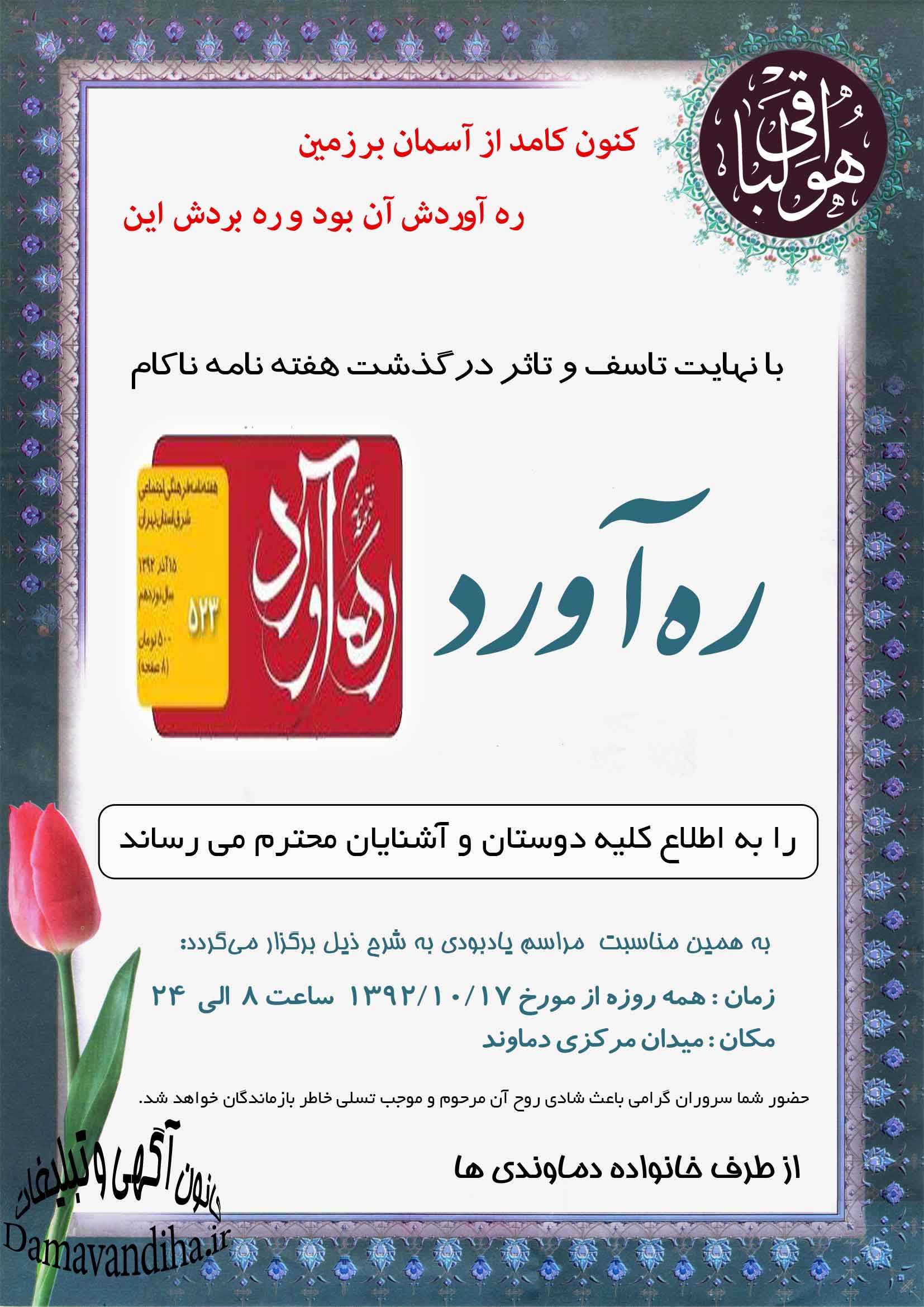 آبشار تیزاب در موقعیت جغرافیایی N354549 E520506 در استان تهران واقع است. در فاصله 5 کیلومتری از شمال دماوند بعد از روستای دشتمزار منطقه ای زیبا روح هر بیننده ای را مینوازد . این جا تنگه ای 1.5 کیلومتری بنام تیزآب طبیعتی کاملا بکر است . وجود درختان بید و رودخانه ای پرآب, آب و هوای مطبوع و دلپذیری را به این منطقه زیبا داده است.