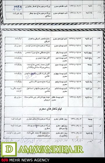 پخت و پخش غذای نذری در شب بیست و پنجم محرم در حسینیه محله درویش شهر دماوند انجام شد. حسینیه" محله درویش" که یکی از بزرگترین و قدیمی ترین حسینیه ها در بین محله های دماوند است از اولین روز محرم شروع به پخت و توزیح غذای نذری کرده و این کار خداپسندانه را تا شب بیست و هفتم ماه محرم ادامه میدهد.