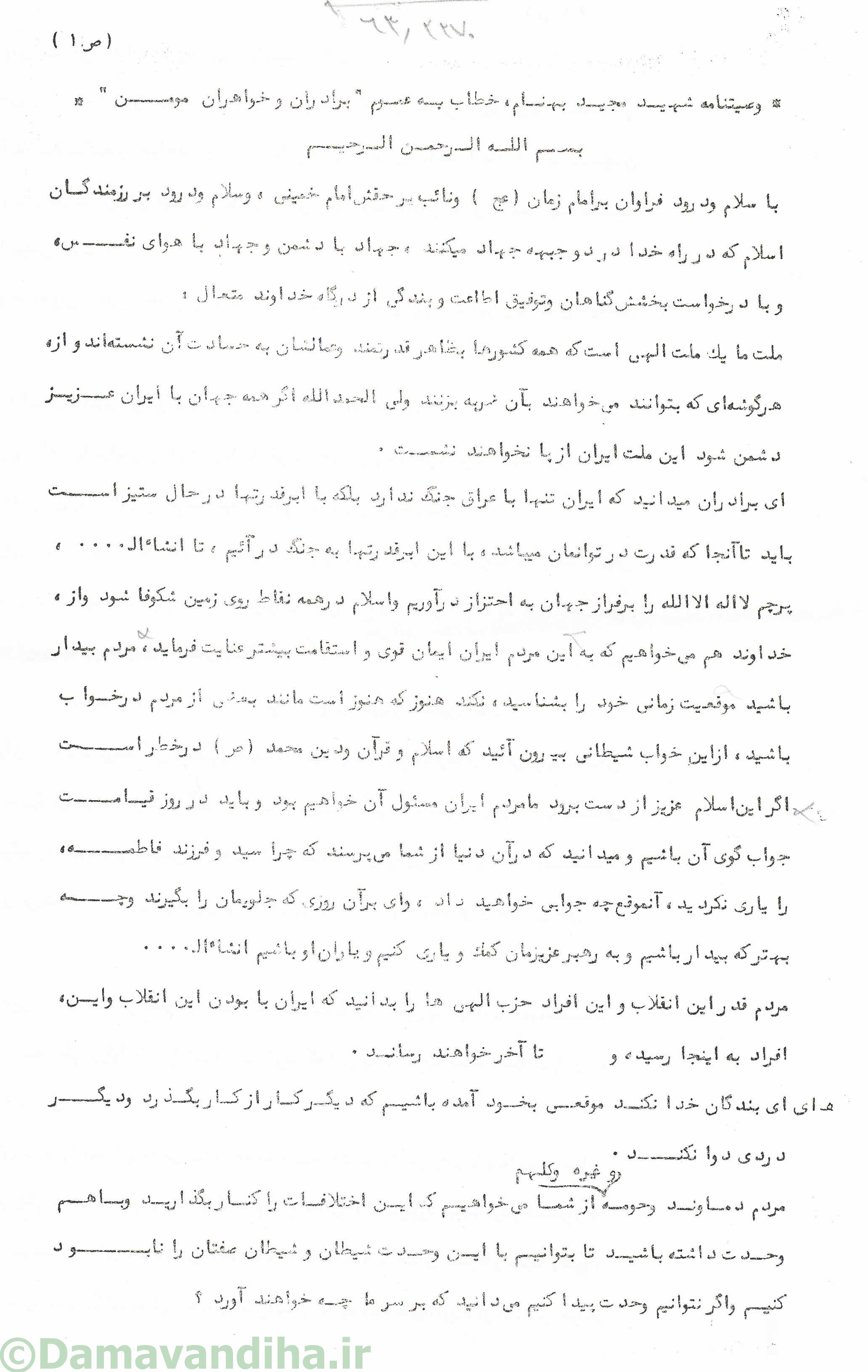 سلام اگر متن وصیت نامه را دارید در وبلاگ بذارید.